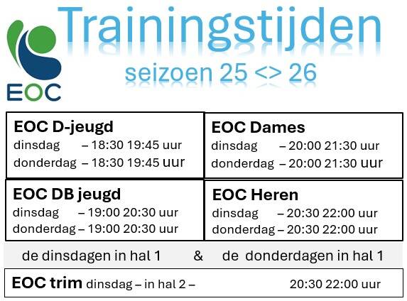 HV EOC heeft teams in verschillende leeftijden. Op dit moment bestaat EOC uit een damesteam, een dames B jeugdteam, een gemengd D jeugdteam en een herenteam. Daarnaast heeft HV EOC een sportieve trimploeg die wekelijks in de Sprong een avond trainen. De trimploeg speelt geen competitie.